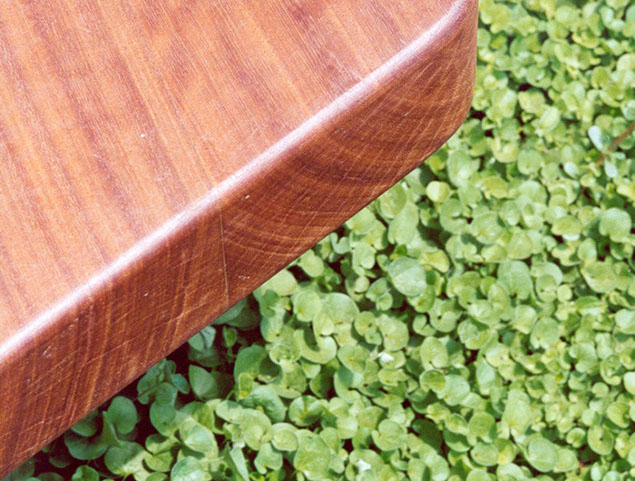 HUG Measures: 160x420x100 cm This exhibit was conceived as an element of welcoming to the visitors of this family. It is composed of two pieces made in wood from Bolondo and fireproof ceramics. It was an exhibit created together with the potter artist Ivet Bazaco.